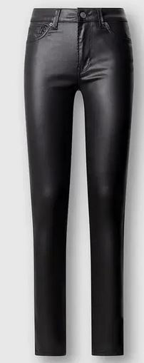 Die Jeans ist knallschwarz mit leichtem Glanz ("coated").
